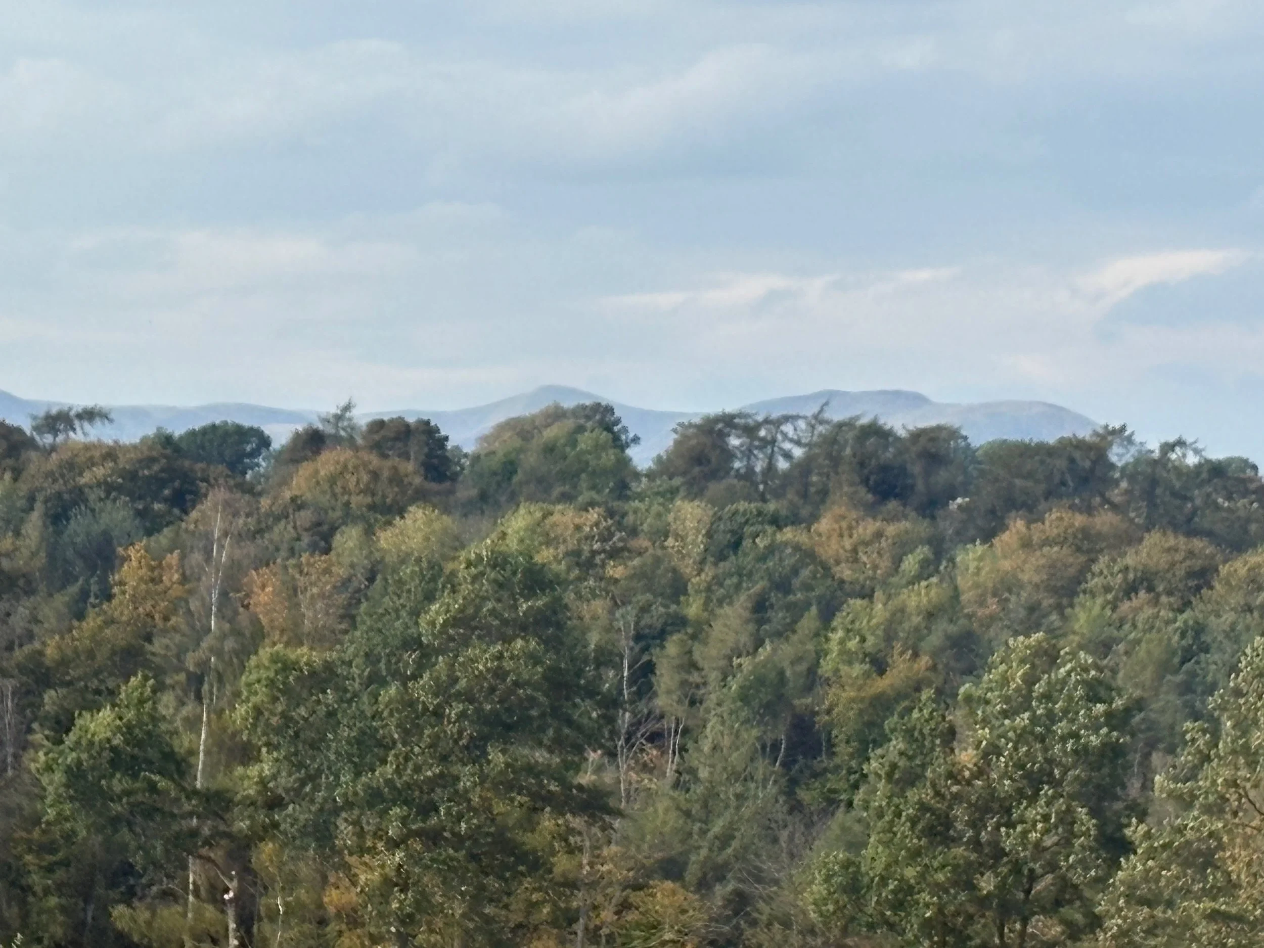 Above: the Pentland Hills behind the trees of Temple Glen, Midlothian, Scotland.