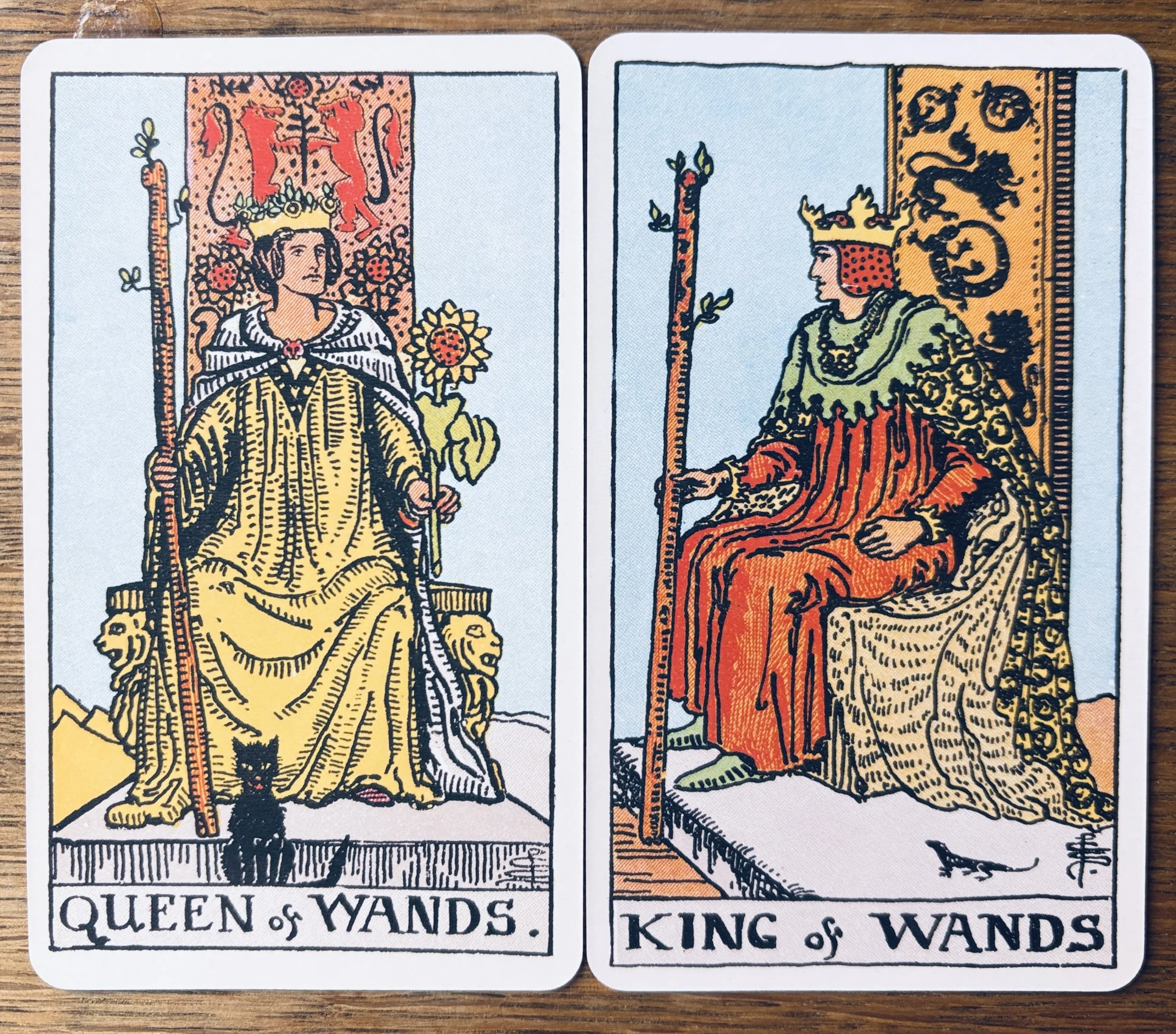 Above: Queen and King of Wands from the Waite-Smith Tarot.