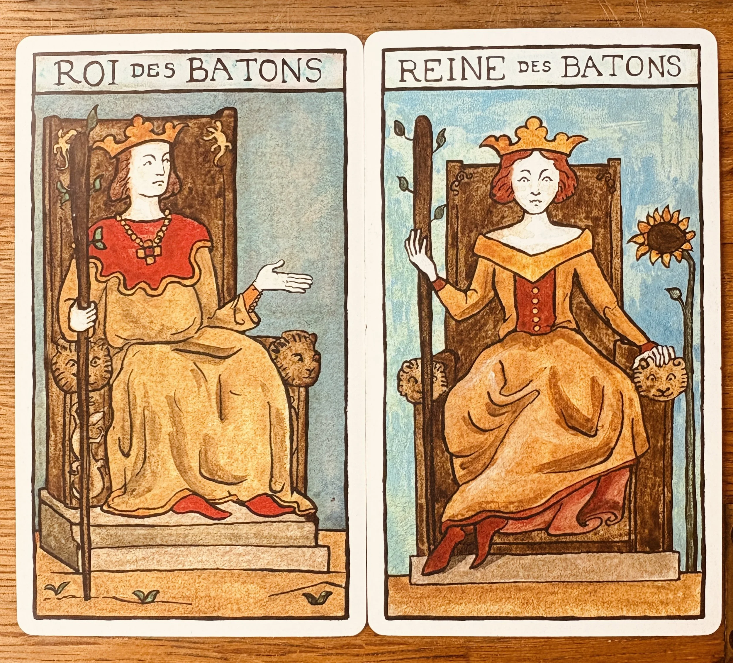 Above: King and Queen of Wands from the Tarot de Marseille-Waite by Iger/Laverty.